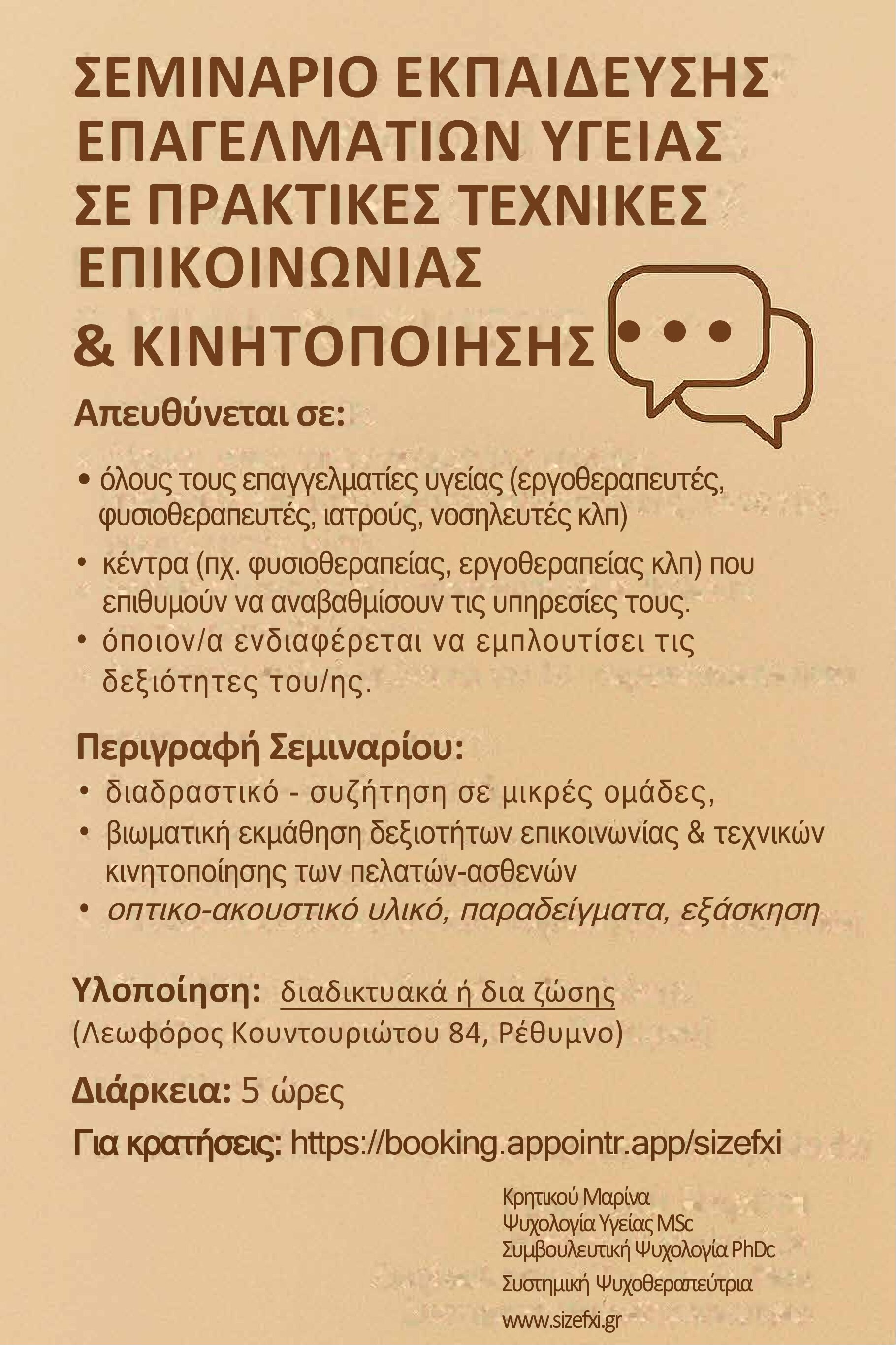 Σεμινάριο Εκπαίδευσης Επαγγελματιών Υγείας σε Πρακτικές Τεχνικές Επικοινωνίας & Κινητοποίησης